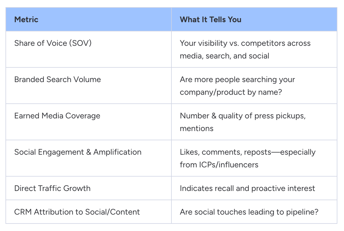 Mindshare refers to how much mind-space your brand occupies in your ideal customer’s awareness—before they have a need. It’s built through repeated, relevant, and valuable exposure: via thought leadership, content, PR, social selling, and more.
